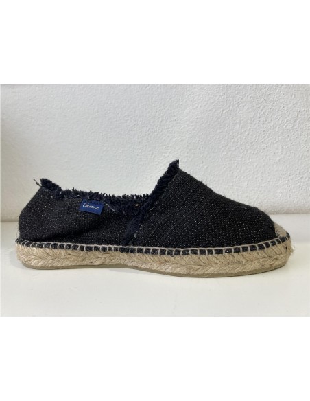 Alpargata básica en lino con hilo metalizado. Suela plana de 2 cm.