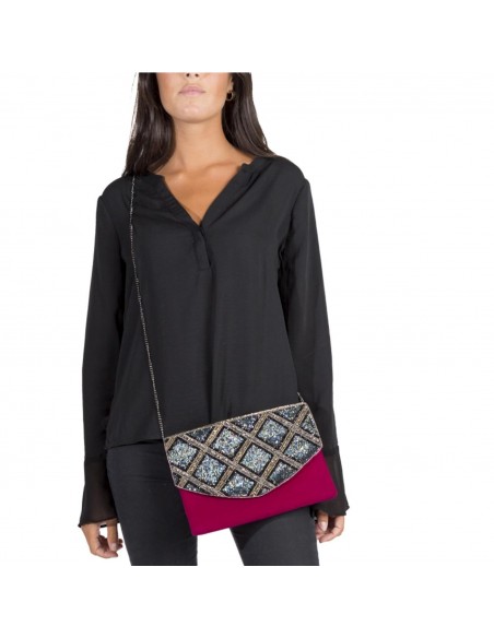 BOLSO FUCSIA CON CRISTALES TANTREND