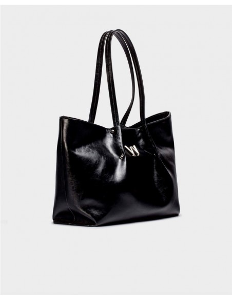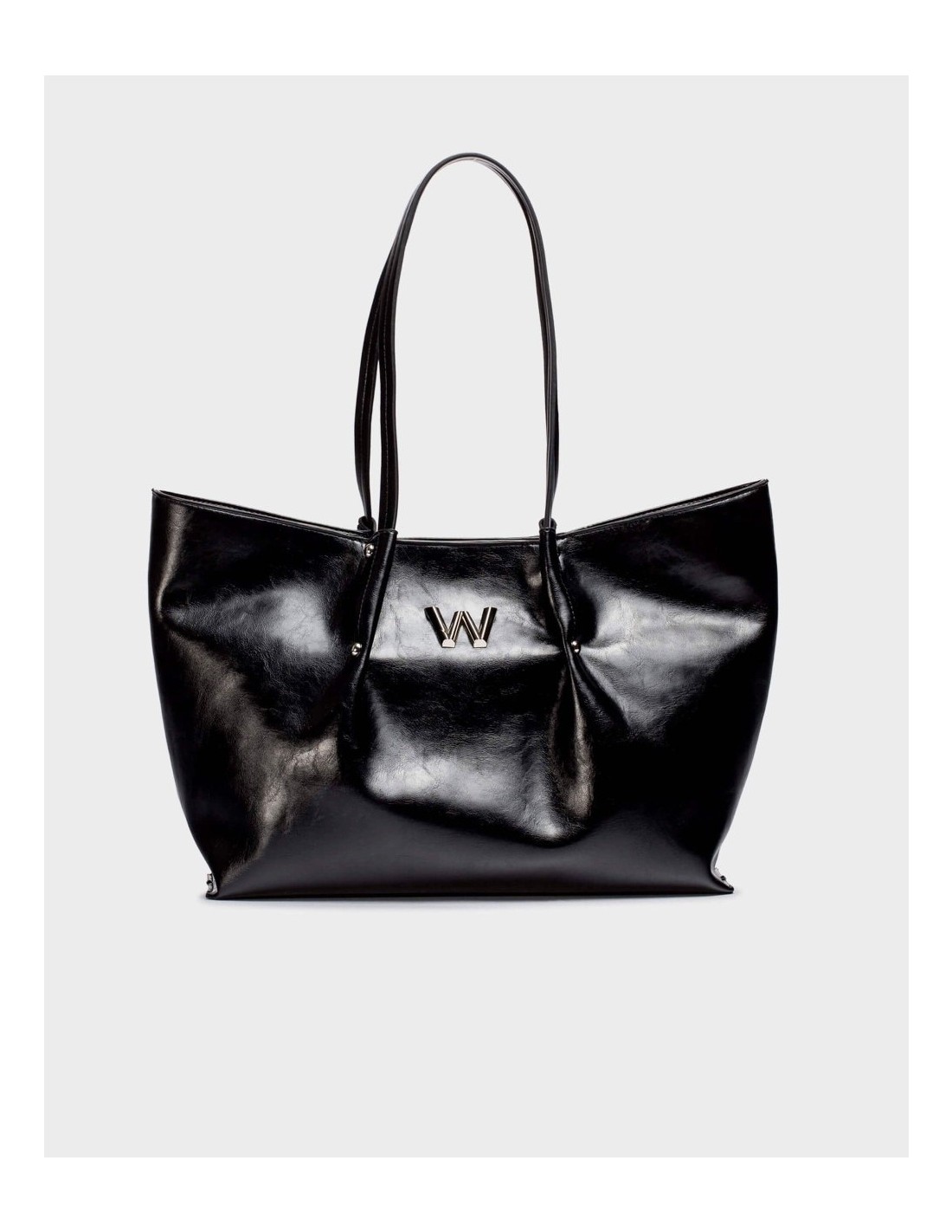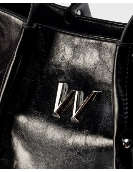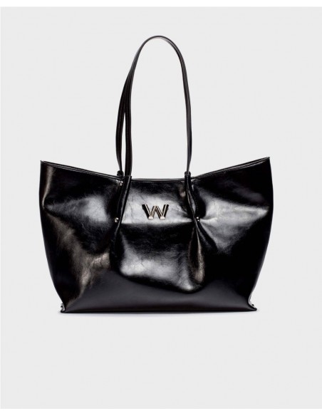 Bolso shopper de tamaño grande con silueta estructurada destaca por su elegante acabado y el detalle metálico de la “W” en el frontal, aportando un toque distintivo y sofisticado. Sus asas dobles permiten un calce cómodo sobre el hombro, ideal para acompañarte en el día a día con estilo. Su amplio compartimento principal con cierre mediante cremallera garantiza funcionalidad y seguridad. Un complemento perfecto. Tamaño 34x27x12 cm.