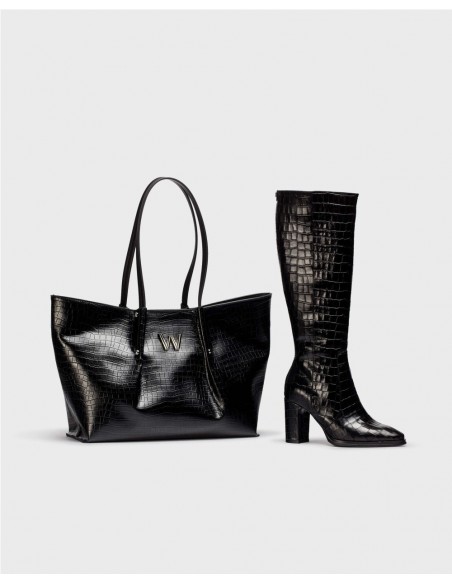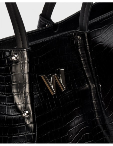 Bolso shopper de tamaño grande con acabado grabado coco. Este modelo tiene silueta estructurada destaca por su elegante acabado efecto cocodrilo y por el detalle metálico de la “W” en el frontal, aportando un toque distintivo y sofisticado. Sus asas dobles permiten un calce cómodo sobre el hombro, ideal para acompañarte en el día a día con estilo. Su amplio compartimento principal con cierre mediante cremallera garantiza funcionalidad y seguridad. Un complemento perfecto. Tamaño 34x27x12 cm.