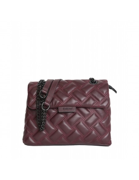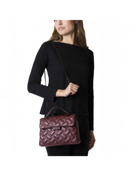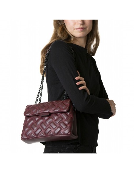 Bolso acolchado con dibujo singular. asas de cadena en negro mate. doble compartimento y dos bolsillos interiores. en un color: burdeos. una pieza. Medidas: 25 x 17 x 8 cm.. Composición: Ext: 100º/? PU. Int: 100º/? poliéster.