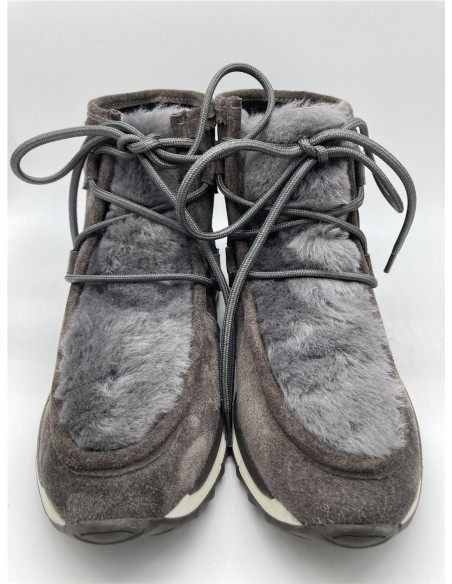 Botín de piel, con pelo en la parte frontal, estilo casual de tipo wallabee con cordones ajustables, plantillas acolchadas y suela confort de goma. Altura de 3,5 cm.