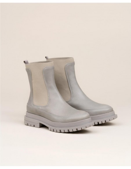 BOTIN TRENDY EN PIEL CON ELASTICOS AL TONO. SUELA GRUESA CON BASE PLANA DE GOMA. MUY COMBINABLE E IMPRESCINDIBLE PARA OTOÑO/INVIERNO
