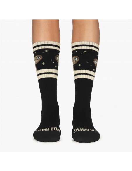 CALCETINES UNISEX JIMMY LION DE MEDIA CAÑA CON DISEÑO DE ET SOBRE FONDO NEGRO. ESTAN CONFECCIONADOS CON 70% ALGODON PEINADO, 27% POLIAMIDA Y 3% ELASTANO.