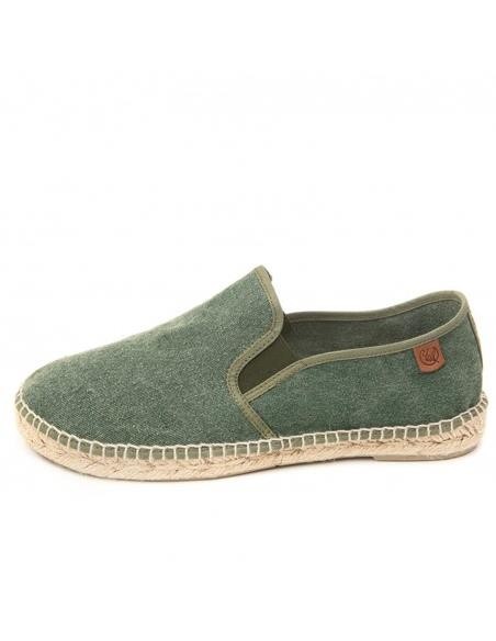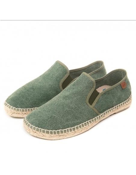 Cangrejo caballero con tejido en algodón envejecido y elásticos en los laterales. Suela de 2 cm de altura natural y ecológica.