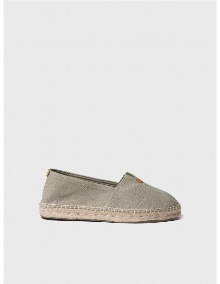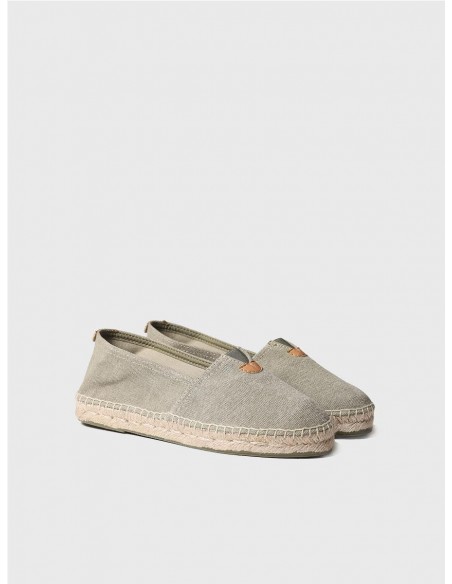 Esta alpargata unisex está elaborada en tejido de algodón. La suela es plana y está hecha de yute y goma. La planta interior es de yute con forro de tejido. La unión del tejido y la suela está cosida a mano con un hilo de algodón de alta calidad. La plantilla acolchada y el elástico frontal crean un calce perfecto. Se trata de una alpargata 100% vegana.