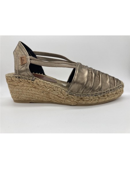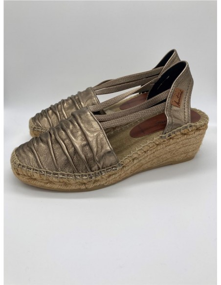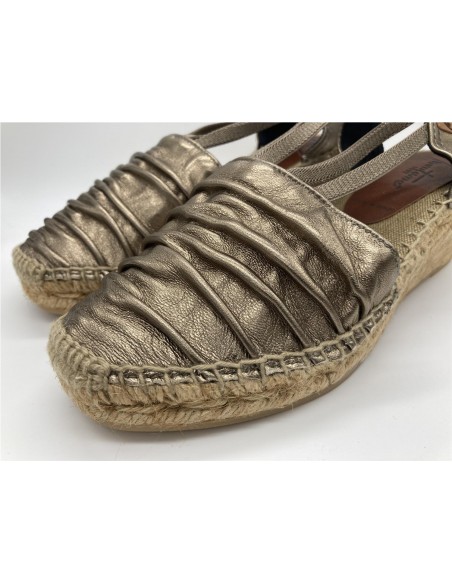 Alpargata en piel napa metalizada arrugada con diseño clásico con elásticos al tono. Altura 5 cm.