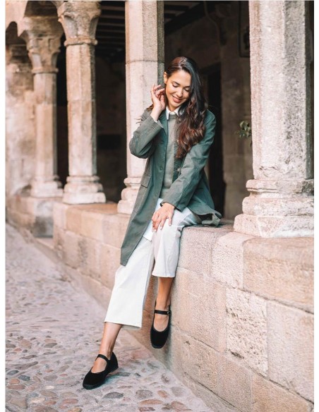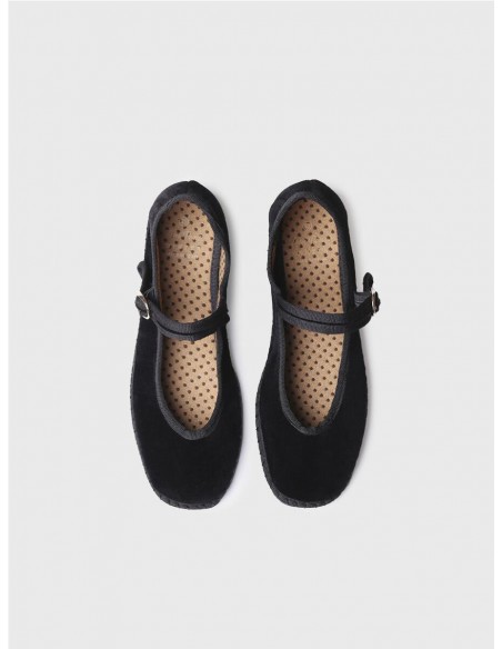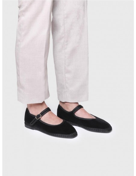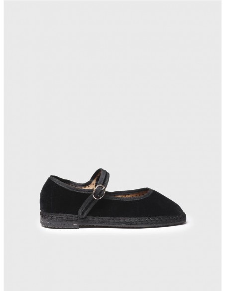 Merceditas de diseño clásico Mary Jane elaboradas en terciopelo con una tira con hebilla en la pala. Plantilla interior de algodón acolchada. La suela es de goma antideslizante. Es un modelo muy actual y combinable a la vez que confortable.
