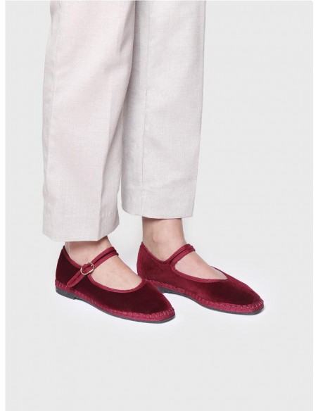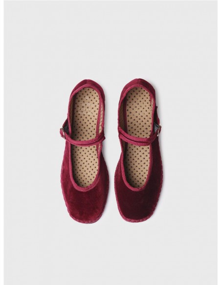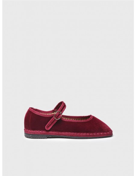 Merceditas de diseño clásico Mary Jane elaboradas en terciopelo con una tira con hebilla en la pala. Plantilla interior de algodón acolchada. La suela es de goma antideslizante. Es un modelo muy actual y combinable a la vez que confortable.