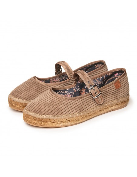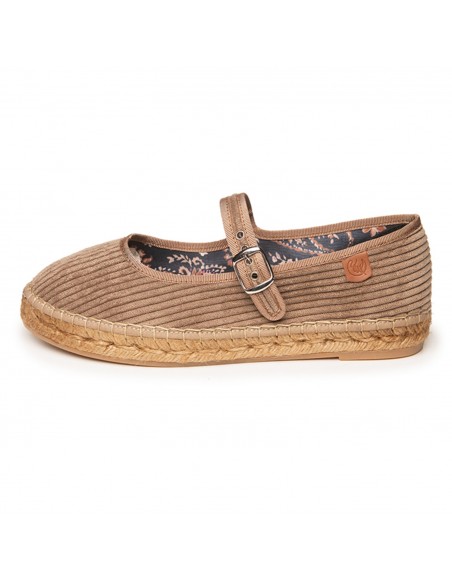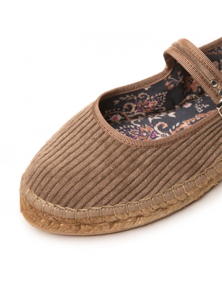 Merceditas de pana aterciopelada, con ribete al tono y sujección mediante pulsera y hebilla libre de níquel. Forro interior y doble plantilla acolchada en tejido estampado. Suela tintada con tratamiento hidrófugo que repele el agua y con goma antideslizante. La suela tiene una altura de  1,5 cm. Es el calzado más cómodo y actual para todos tus looks de esta temporada.