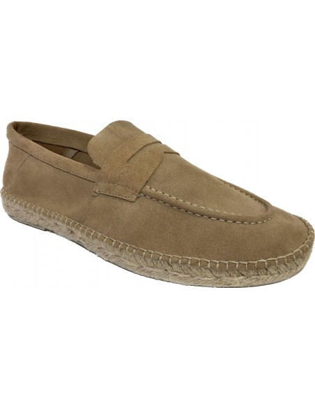 Alpargata de corte mocasín elaborado en piel de serraje. Suela plana de 2 cm. Modelo atemporal y versátil, perfecto fondo de armario.