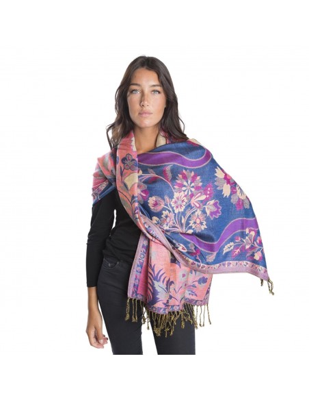 Pashmina dos lados elaborada en suave material fluido con dibujo búlgaro y flecos en ambas terminaciones. Con colores combinados. Medidias: 70 x 180 cm. Composición: 53% acrílico, 47% viscosa. ldeal para dar un toque elegante a tu look de temporada.