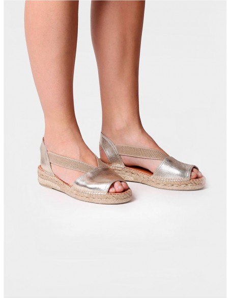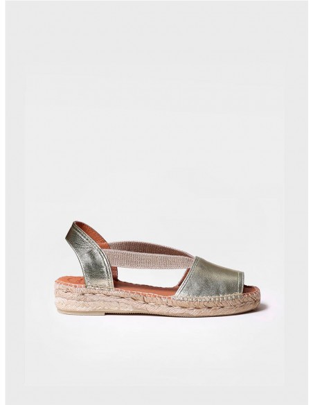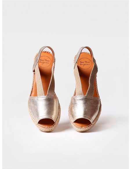 Menorquina en piel con dos elásticos laterales elaborada en tono liso. Plantilla forrada en piel para una mayor comodidad. Suela antideslizante. Altura total de la cuña son 3,5 cm.