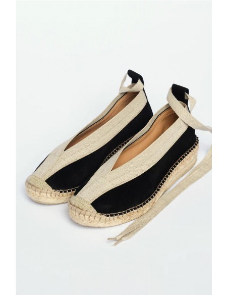 ALPARGATA CERRADA CON BORDE ELASTICO Y CINTAS ESTILO BAILARINA ELABORADA EN PIEL VITELO. SUELA DE YUTE NATURAL. ALTURA 3 CM. PERFECTA PARA TUS LOOKS CASUAL DEL VERANO.