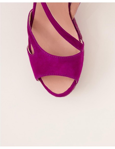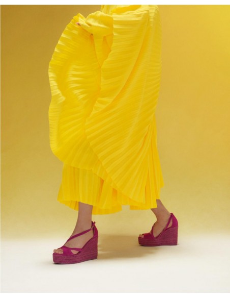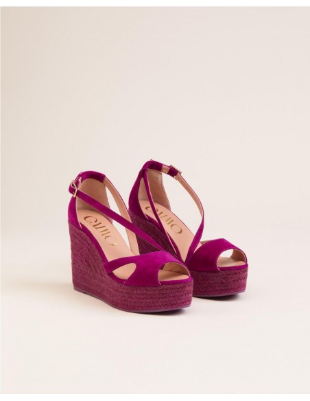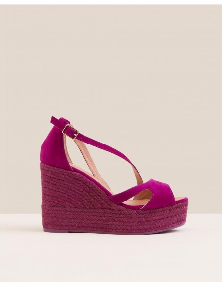 Alpargata tipo sandalia elaborada en piel ante monocolor con tiras asimétricas y talón cerrado con cierre mediante hebilla lateral. Forro y plantillas acolchadas de piel con cuña en el mismo color de yute ecológico de 10,5 cm de altura y plataforma de 3,5 cm. Estas alpargatas son la elección perfecta para ganar altura y darle a tu look un toque final llamativo sin perder la comodidad en tus looks de verano y todos tus eventos.