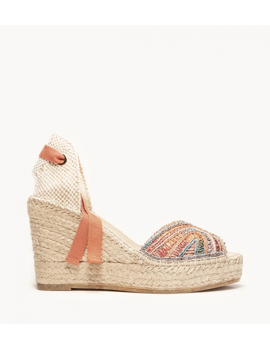 SANDALIA DE RAFIA CON CINTAS DE ALGODON PARA ATAR AL TOBILLO. PLANTA FORRADA Y ACOLCHADA. ALTURA TOTAL DE 10 CM INCLUYENDO 3 CM DE PLATAFORMA. ES UN MODELO IDEAL QUE REALZA TODOS TUS LOOKS.