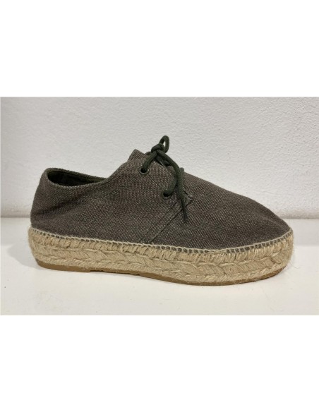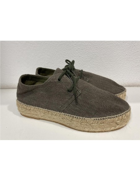 Sneaker de tejido lino con cordones en color liso. Planta forrada y acolchada. Suela plana de esparto de 3 cm.