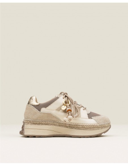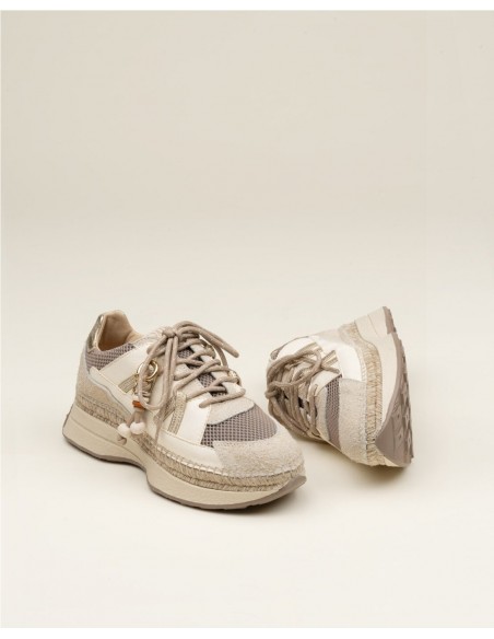 Sneakers confeccionadas en piel y rejilla de algodón, combinan una suela maxi de goma con piso de yute 100% ecológico. Su forro y plantilla acolchada de piel garantizan confort en cada paso. Tienen una altura de 3,1 cm y están diseñadas y fabricadas a mano en Arnedo, La Rioja, estas zapatillas de mujer destacan por su versatilidad y aire contemporáneo, perfectas para elevar tus looks casuales.