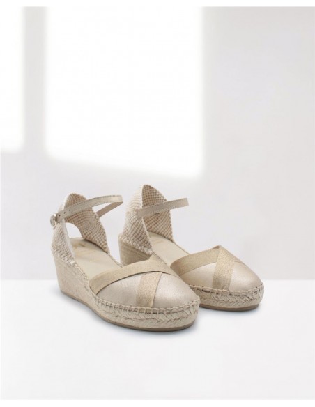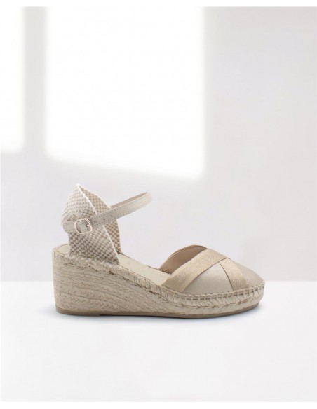VALENCIANA CON PULSERA AL TOBILLO ELABORADA EN PIEL CON DETALLE DE CINTAS CRUZADAS EN LA PALA. ALTURA TOTAL DE 6,5 CM CON 2 CM DE BASE.