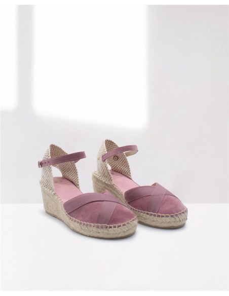 VALENCIANA CON PULSERA AL TOBILLO ELABORADA EN PIEL CON DETALLE DE CINTAS CRUZADAS EN LA PALA. ALTURA TOTAL DE 6,5 CM CON 2 CM DE BASE.