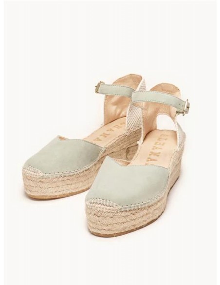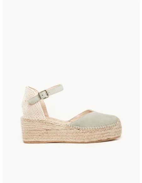 VALENCIANA ELABORADA EN PIEL DE ANTE CON PULSERA AL TOBILLO. PLANTILLA FORRADA Y ACOLCHADA. SUELA CON PLATAFORMA. ALTURA TOTAL DE 6 CM CON BASE DE 3 CM.