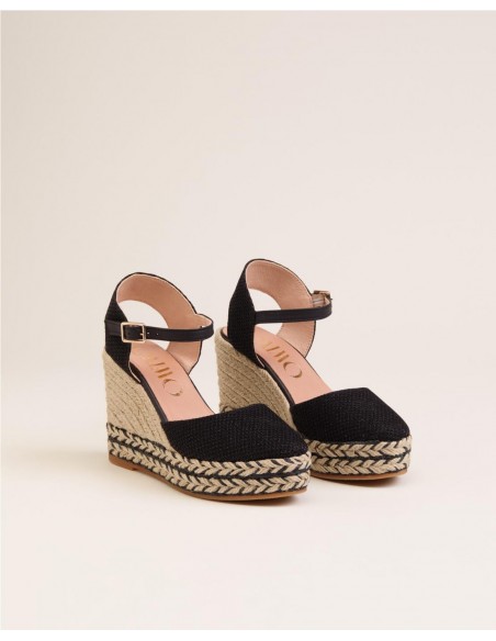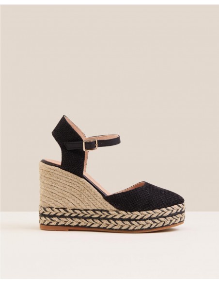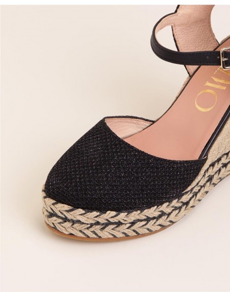 Valenciana en tejido rejilla metalizado de corte cerrado y talón abierto en piel con pulsera con hebilla lateral. Forro y plantillas acolchadas de piel con cuña de yute ecológico de 9,5 cm de altura y plataforma de 2,5 cm. Ideales para dar un toque sofisticado a tus looks.