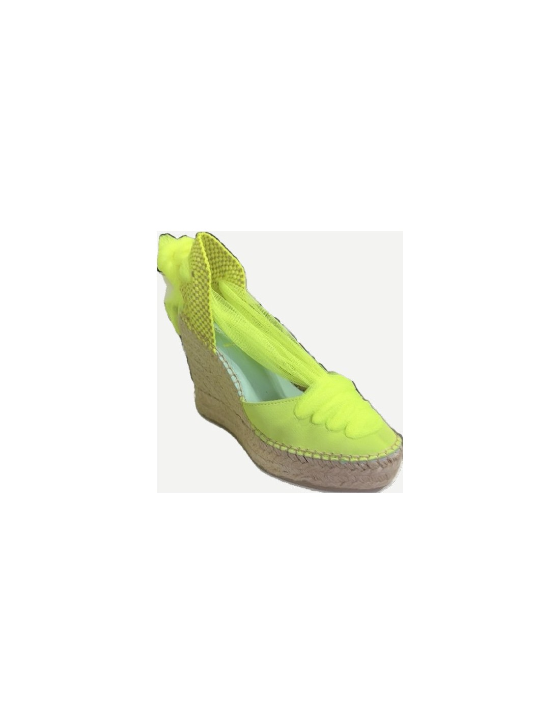 VALENCIANA DE PIEL FLUOR CON ENCINTADO Y CINTAS DE TUL FLUOR AL TONO. PLANTA FORRADA Y ACOLCHADA QUE LE DA UNA COMODIDAD INCREIBLE. ALTURA TOTAL DE 10 CM INCLUYENDO LA PLATAFORMA DE 3 CM. ES EL TOQUE MÁS ORIGINAL QUE LE PUEDES DAR A TUS LOOKS.