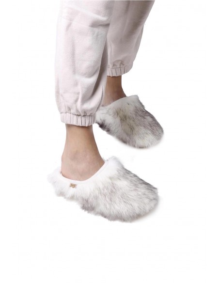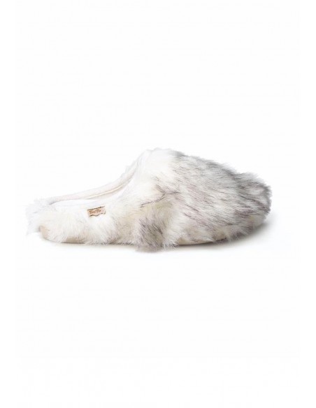 Zapatilla de casa elaborada en material textil y pelo sintético. Interior forrado y plantilla forrada y acolchada. Suela de goma antideslizante. Recomendamos llevar un número más salvo el número 41 que equivale a un 42.